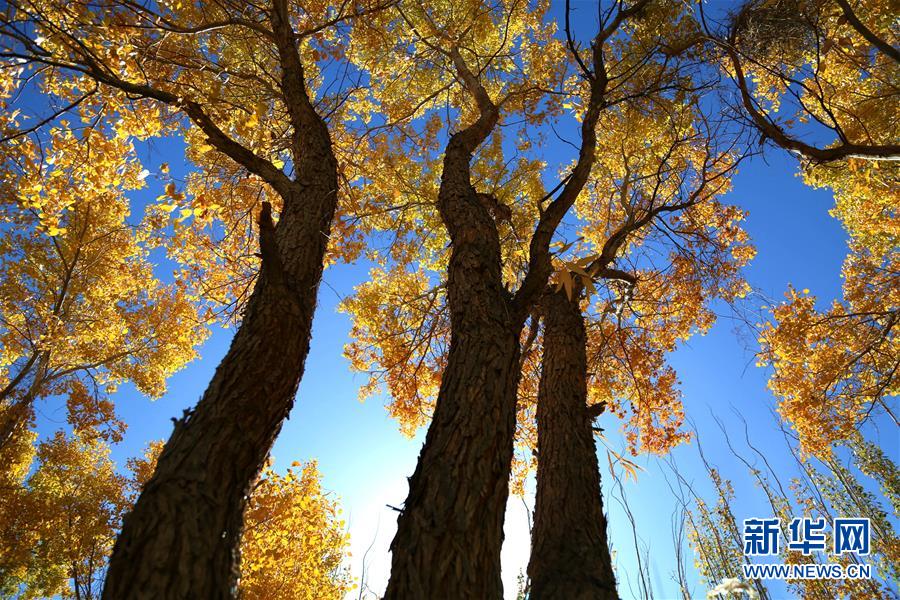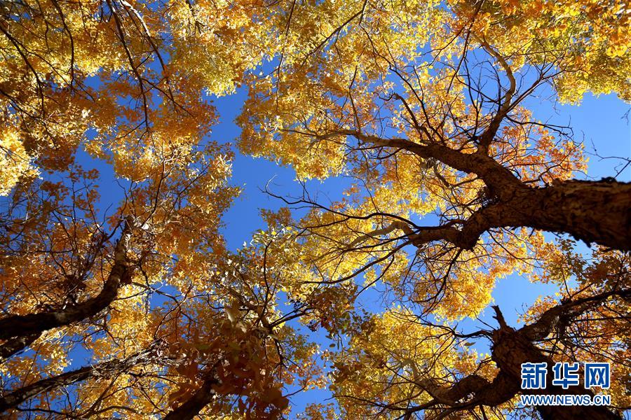 金秋时节,甘肃省敦煌市莫高镇的胡杨林被秋色染黄,美不胜收。