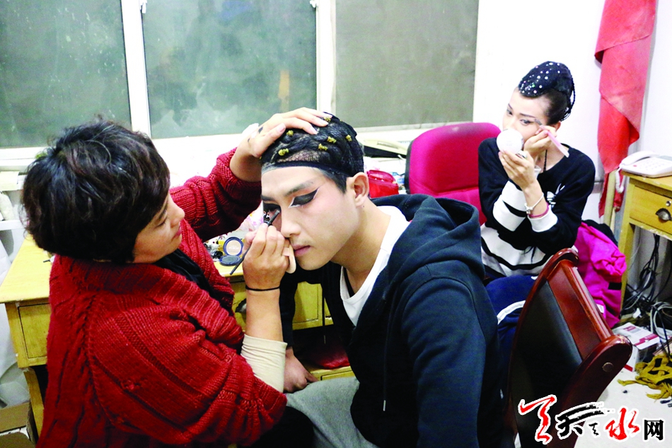 “大家抓紧时间做好准备工作!”周末的秦州大剧院总是比往常忙碌了许多,后台人头攒动,身影匆匆,热闹非凡。此时正值晚上7点,大型舞剧《一画开天》的演员们正在做最后的妆容、服饰以及道具调整,为了晚上八点半的演出,近50名演员从下午4点就开始准备,确保呈献给观众一场完美的表演。