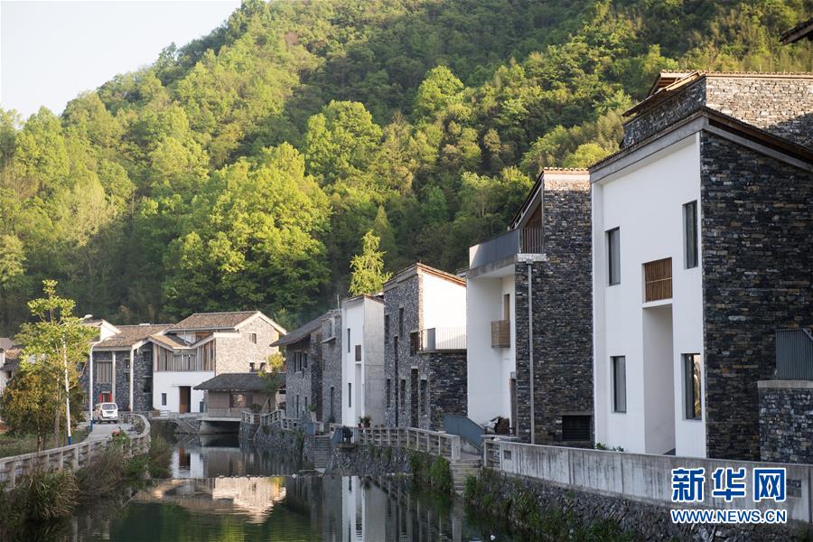浙江省杭州市富阳区洞桥镇文村地处富阳区远郊,村中保有40幢古民居,建筑师王澍以当地的建筑材料和生活传统为村里设计了14幢新民居,呈现出美丽宜居乡村新面貌(4月10日摄)。 新华社记者 翁忻旸 摄