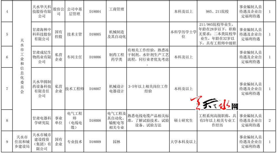 5.面向全国,不限户籍生源。在天水市(包括县区)范围内已就业的人员不列入引进范围。