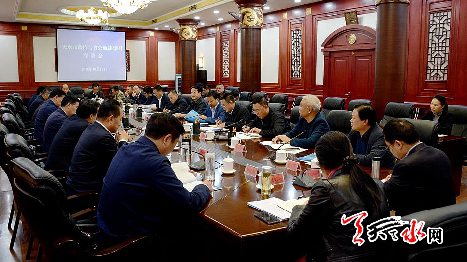 天天天水网讯【全媒体记者吴丽娜】10月12日下午,天水市政府与甘肃省公路航空旅游投资集团有限公司举行座谈会。双方就加强央企与地方合作、加快推进有关合作项目进行了洽谈交流。