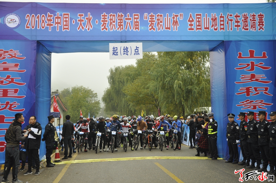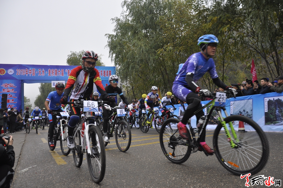 天天天水网讯(记者 刘晓亚 杨旭)10月14日,2018年中国·天水·麦积第六届“麦积山杯”全国山地自行车邀请赛在麦积山风景名胜区激情开赛。来自全国18 个省、市、自治区自行车俱乐部和广大自行车运动爱好者约350人参加了激烈的角逐。