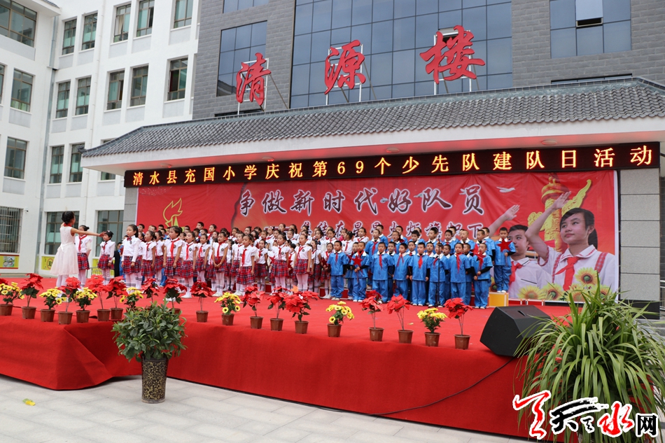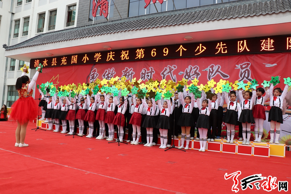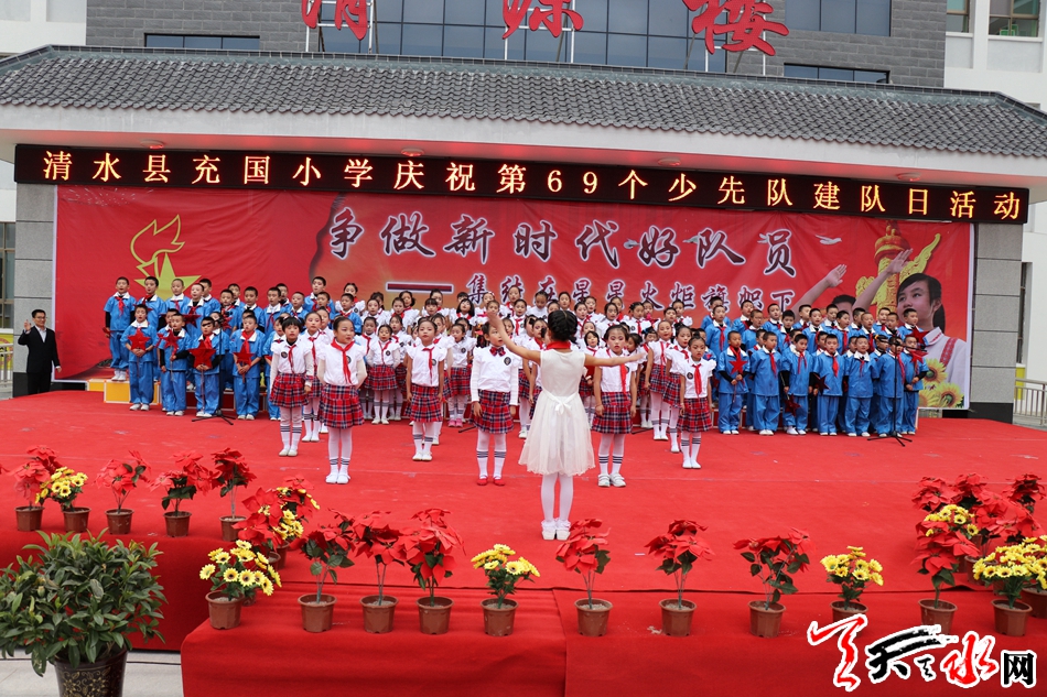 清水县充国小学举行建队节少先队歌曲传唱活动
