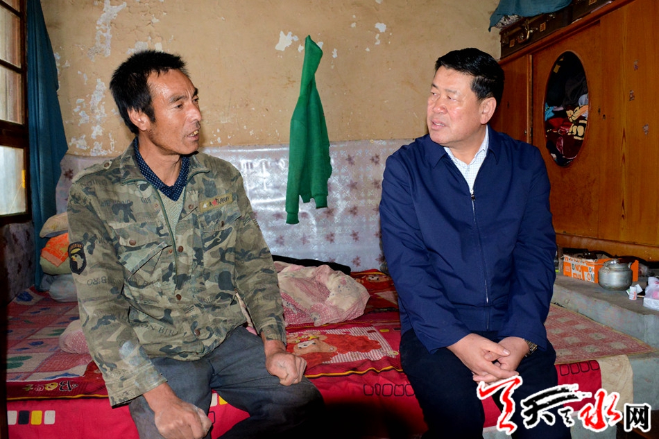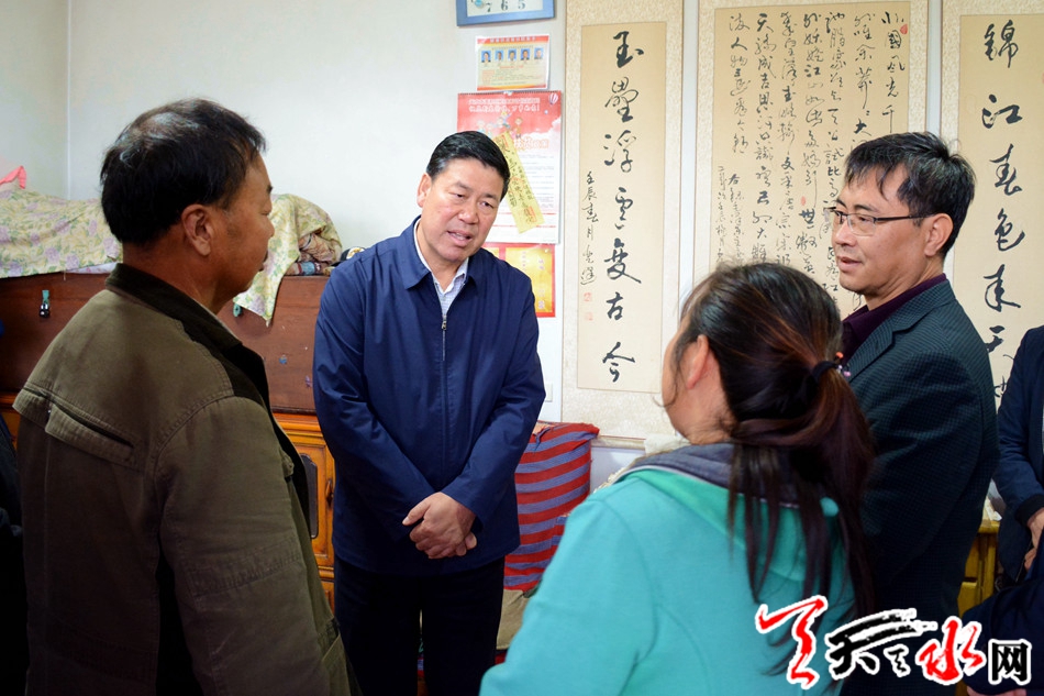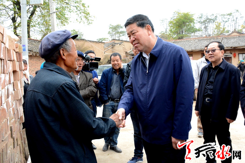 天天天水网讯【全媒体记者吴丽娜】10月16日,市委副书记、市长王军来到自己联系的麦积区新阳镇肖王村、坚家山村,走访看望贫困户,调研督查脱贫攻坚工作。王军强调,要深入贯彻习近平总书记扶贫开发重要战略思想,紧盯“两不愁、三保障”脱贫标准,全面落实精准帮扶措施,培育壮大富民产业,确保按期实现稳定脱贫。