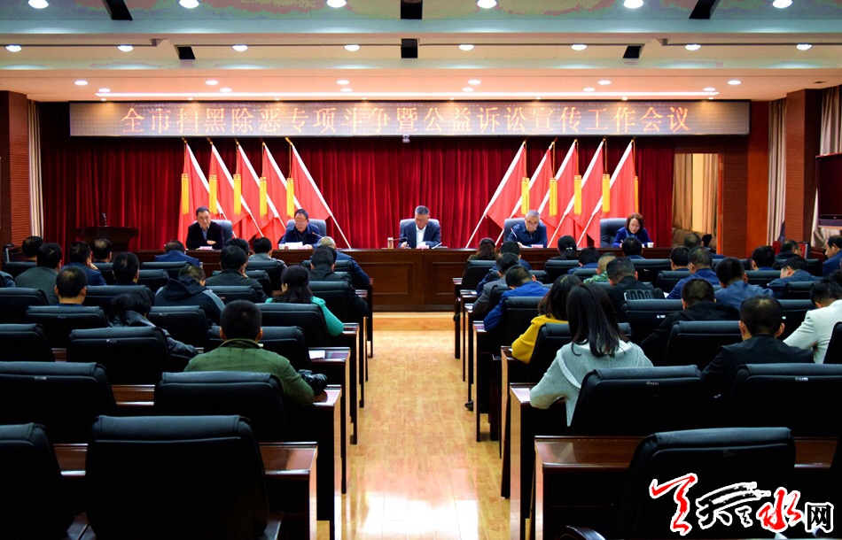 会议宣读了《天水市扫黑除恶专项斗争宣传实施方案》和《天水市公益诉讼工作宣传方案》,秦州区政府、天水日报社、天水广播电视台作了会议发言。
