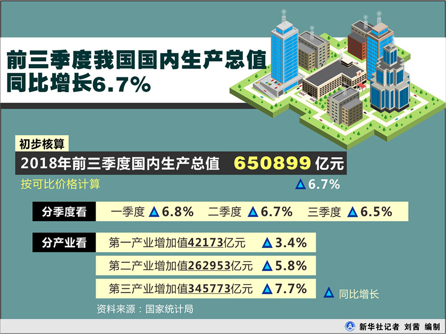 国家统计局19日发布的数据显示,第三季度6.5%的经济增速稳中有缓,前三季度增速为6.7%,保持在合理区间,调查失业率降至5%以下,结构继续优化,动能接续转换。面对稳中有变的经济运行环境,取得这样的成绩实为不易。