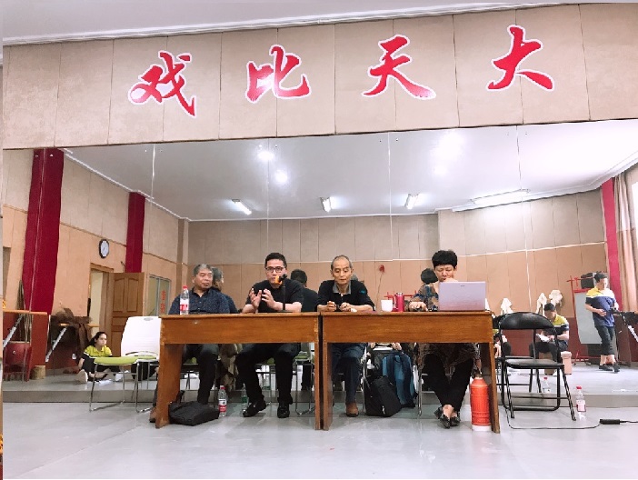 儿童剧《田梦儿》制作人张锋(左二)和导演胡一飞、编剧薛梅在排练现场。图片来源:南通文明网