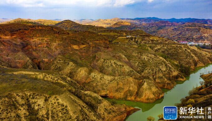 在黄土高原的陕西省延安市安塞区坪桥镇王家湾,有一处峡谷丹霞地貌,是2017年陕西省地质调查院在陕北及渭北地区发现大规模丹霞地貌的一部分。这里的山势顶部被黄土覆盖,底部经流水下切侵蚀红色砂岩外露,出露的岩石纹理如波浪,深秋中犹如一幅流动的画卷。