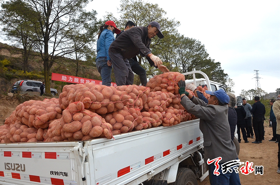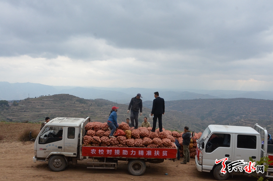 天天天水网讯【全媒体记者郝勤学】10月17日下午,在麦积区五龙镇杨王村,五龙镇首批向甘肃林业职业技术学院定点销售的13000多斤洋芋顺利完成交接,这标志着五龙镇与省林职学院“农校对接”工作正式启动,五龙洋芋从此开始供应省林职学院食堂。