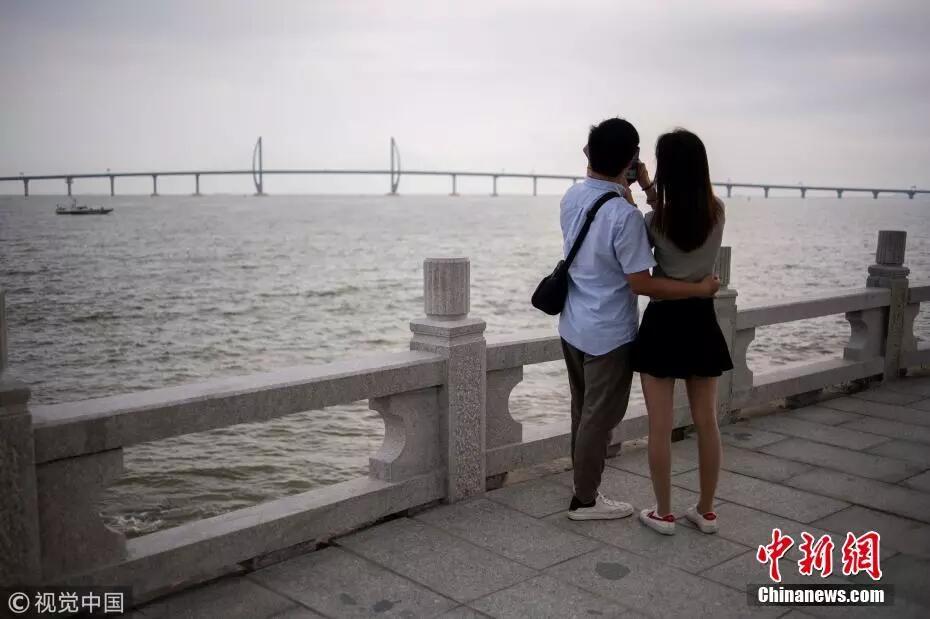 港珠澳大桥通车前, 珠海民众前去观景,拍照留念。