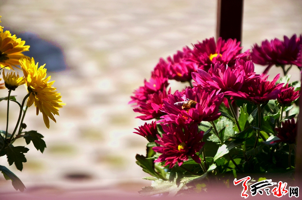 马跑泉公园,这里俨然成了绝美花卉“伊人”的展示舞台。秋收时节,在这个一片金黄渲染的季节,登临公园的制高点——天一阁广场,作为精品菊花展示区,这里是最令人惊艳的所在。一片片、一簇簇、一行行菊花密密匝匝如绯云般开得热闹妩媚,成片的菊花气势磅礴与无限柔媚,满目灿然与光华灼灼,如此盛景,似天边飞来的传奇。
