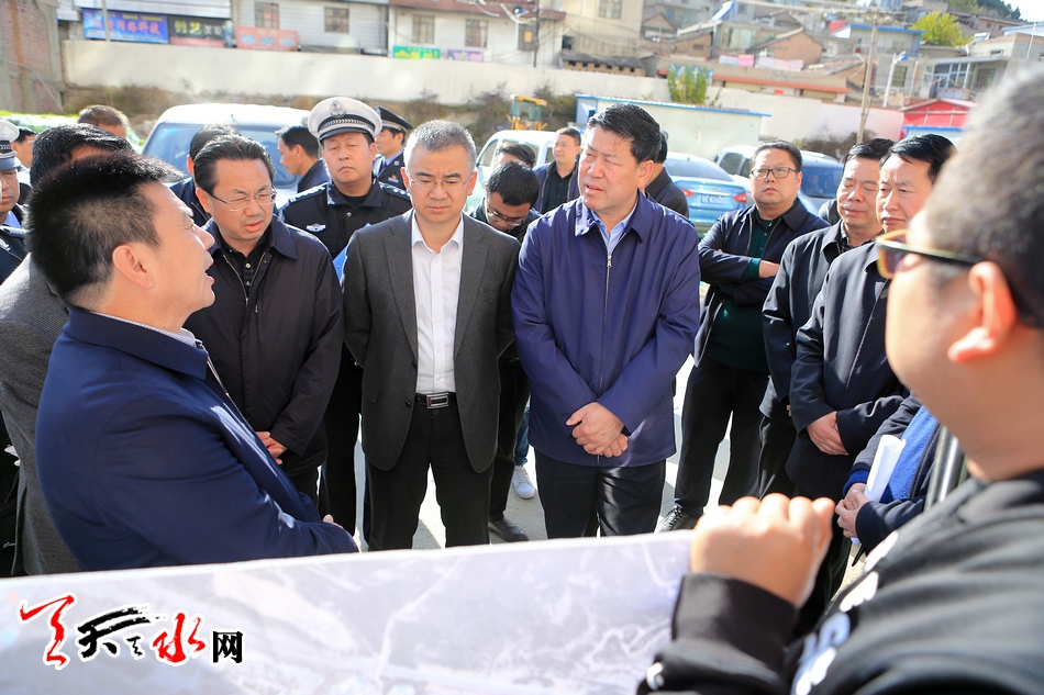 天天天水网讯【全媒体记者吴丽娜】10月23日,天水市委副书记、市长王军带领秦州区政府以及市国土、交通、规划、建设、交警等部门负责同志,来到泰山路左家场和金家庄政务中心,就城区部分交通堵点疏解工作进行现场办公。他强调,要牢固树立以人民为中心的发展思想,统筹规划,标本兼治,下最大功夫解决好群众最关心的“出行难”问题,不断增强人民群众的幸福感和获得感。