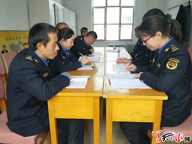 执法队伍建设是全面推进依法治国方针的基础和根本,随着城管制度改革不断深入,天水郡中队以“作风建设年”为契机,中队中层领导坚持带头主动学习,加大对执法人员法律法规的学习力度。中队还按照业务学习计划组织集中学习,不断提升执法水平;注重强化学习效果,建立和完善执法队员的常态化学习机制,丰富学习内容,提高学习的针对性,确保执法人员在学习中开阔视野、增强才干、提高水平。