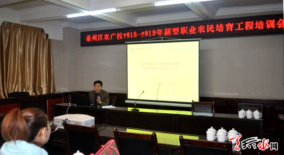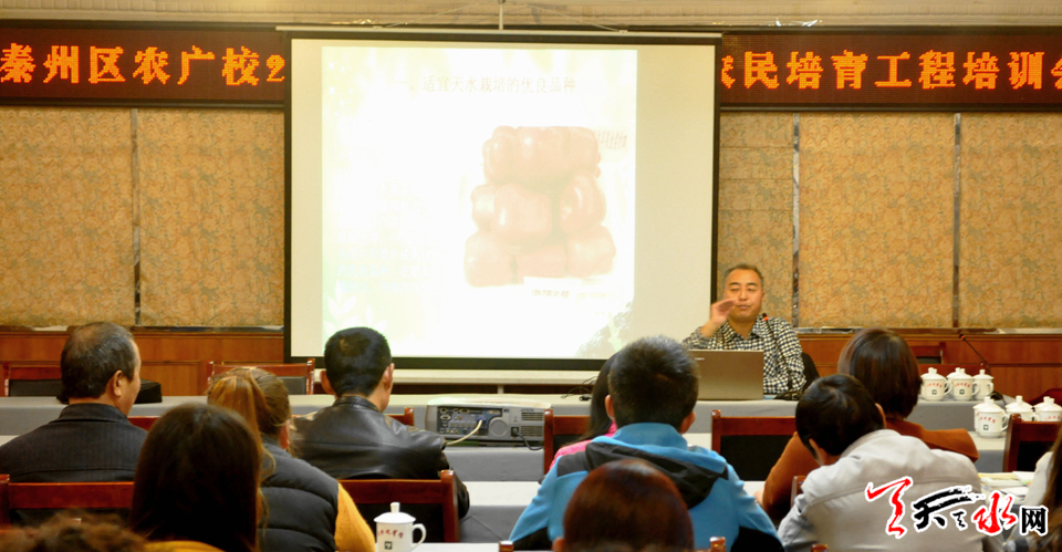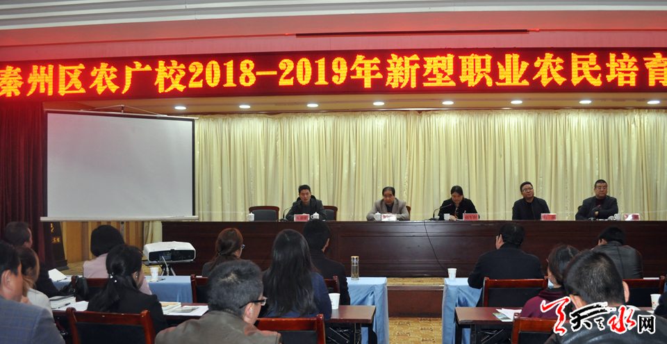 天天天水网讯【记者 张文都 通讯员 张亚佰】10月22日下午,秦州区农广校2018年新型职业农民培育培训班在市政府招待所开班,秦州区100名农民合作社负责人、合作社骨干、种植大户及40名建档立卡贫困户代表参加了开班仪式。