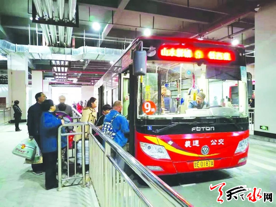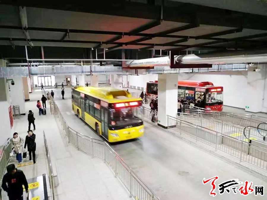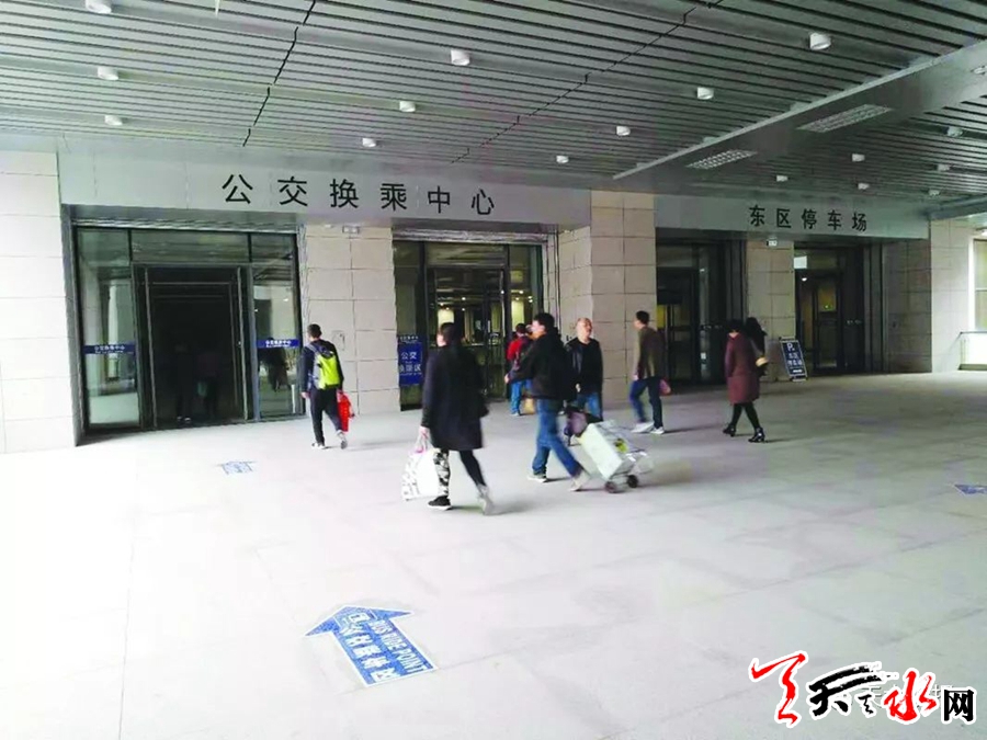 9月30日,天水南站站前综合交通枢纽东区、中区投入运行,原先露天的公交车站也搬进了设在室内的公交换乘中心。