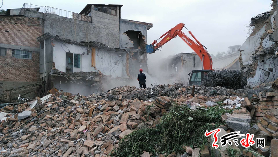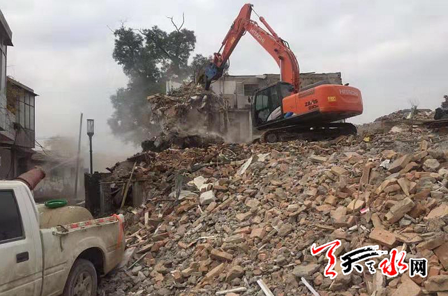 天天天水网讯【通讯员 赵懿】2018年11月1日,为了保障西关片区综合利用与保护项目的顺利实施,由秦州区政府组织,秦州区综合执法局、征迁局、西关街道办事处以及消防卫生等部门联动,协同执法,利用大型拆除机械,对阻碍项目实施的两户建筑物集中强制拆除。为了保证拆除工作的顺利进行,区政府分管领导靠前指挥,各部门各司其职,主动作为,通力合作。当天共拆除项目区违章建筑1000余平方米。