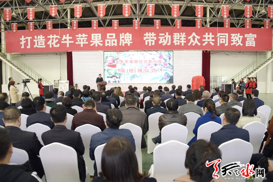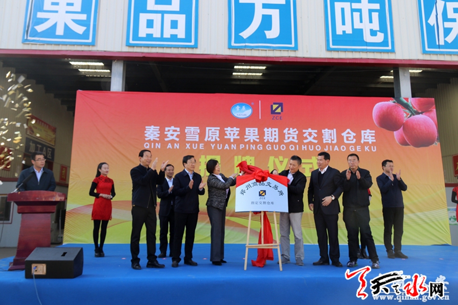 天天天水网讯【记者徐媛】10月30日,天水苹果期货交割仓库揭牌授牌仪式分别在麦积区、秦安县举行。天水花牛苹果集团公司、秦安雪原果品公司成为郑州商品交易所苹果期货交割仓库。