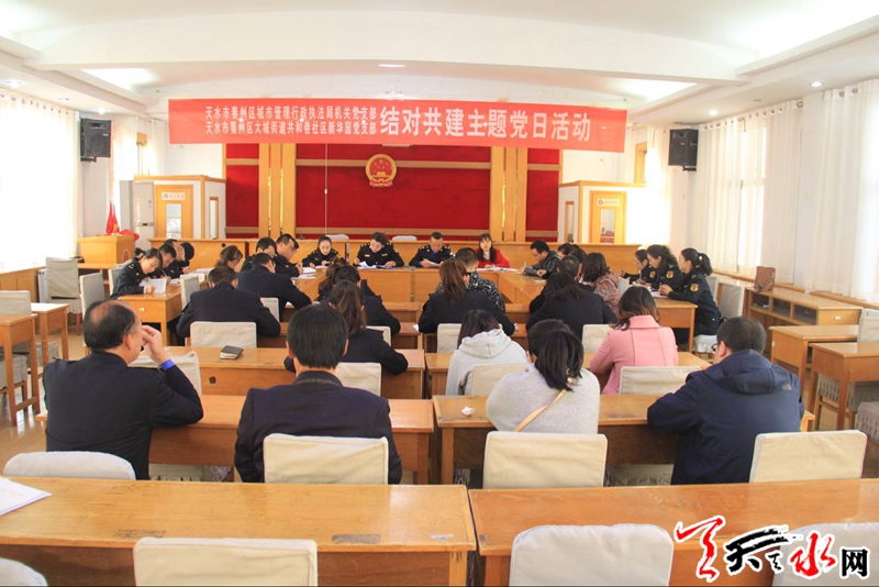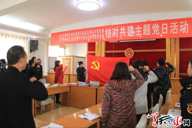 天天天水网讯 11月2日是本月“主题党日”活动日,秦州区执法局机关党支部与大城街道共和巷社区新华园党支部联合开展了党建结对共建“主题党日”活动。