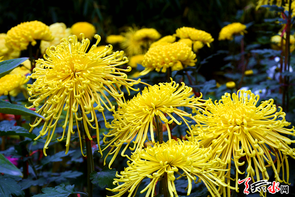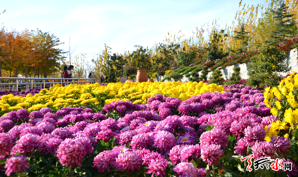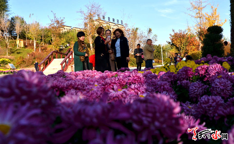 十月的天水,秋叶红千山,大自然呈现出一派热烈欢快的勃勃生机。天水市麦积区马跑泉公园数十万盆菊花开得热闹妩媚,流光溢彩,暗香浮动,一派万紫千红的妖娆境界。