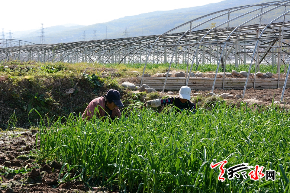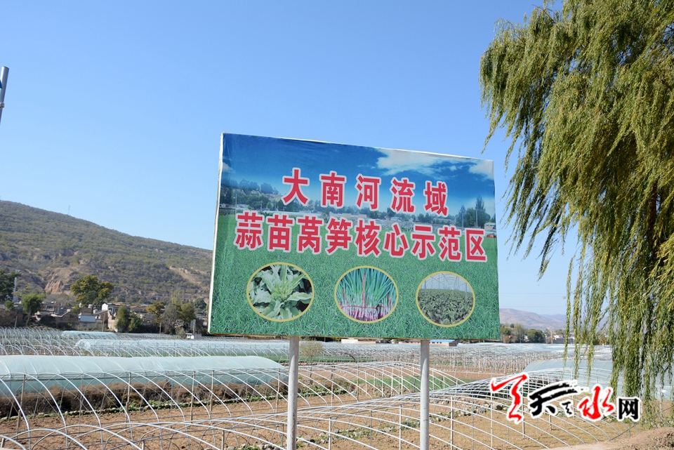 郭全刚告诉记者,武山县大南河流域蔬菜基地是武山县设施蔬菜主要种植区域,位于大南河流域的郭家庄建成标准化生产基地1600亩。近年来,蔬菜长势喜人,是因为武山县政府通过项目支持在大南河基地强化基础设施建设,对原竹木大棚进行钢架优化和升级改造,实施设施蔬菜大棚提质增效改造工程,通过引进新品种、改良土壤、新型技术推广、以及化肥农药的“两减一增”实施,提高了“武山蒜苗”品质的同时也打响了品牌,促进了蔬菜增产增收。