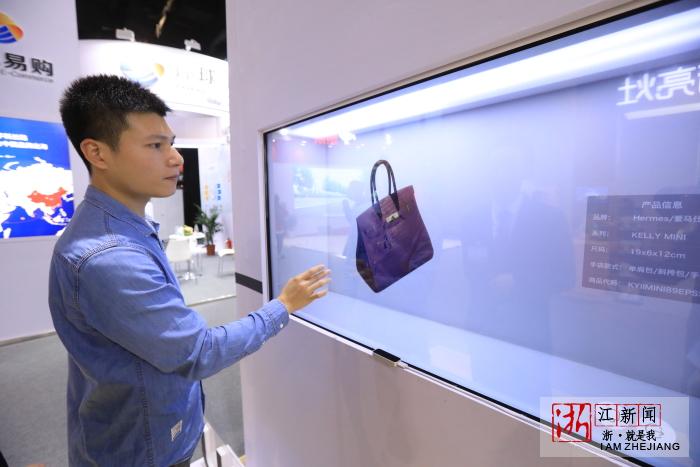 观展者使用空气屏幕,这种技术能让商品呈现更为立体。