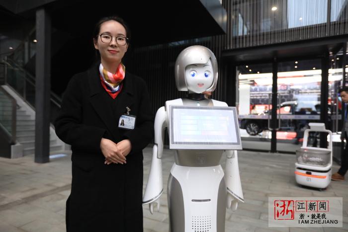 智能机器人成场馆引导员,可以直接语音对话。
