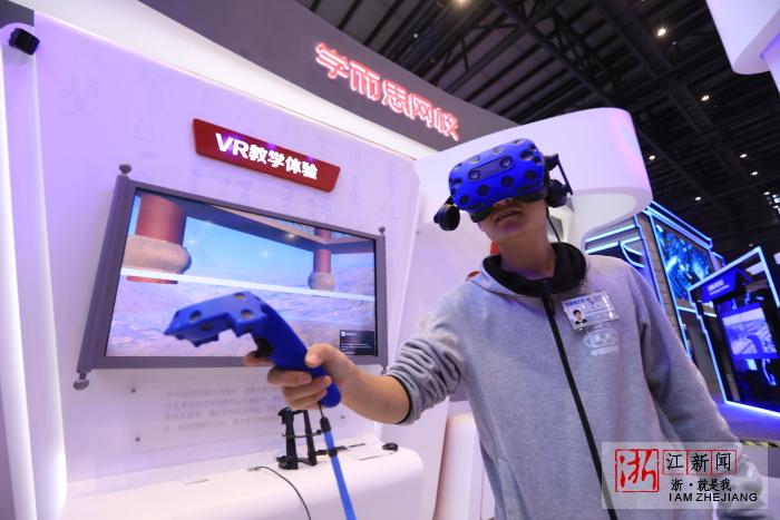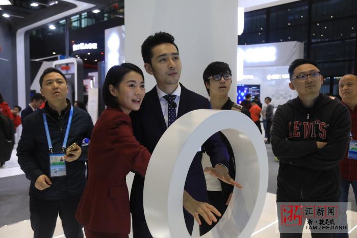 外国嘉宾参观互联网之光博览会上的黑科技。