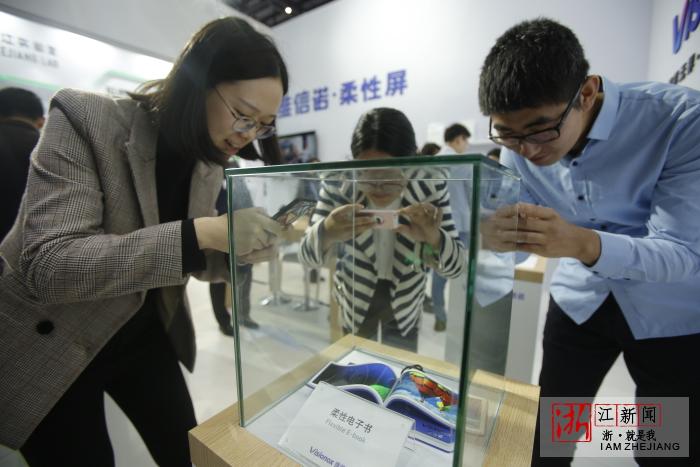 柔性电子屏吸引了不少嘉宾关注。