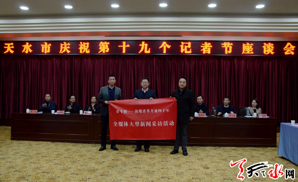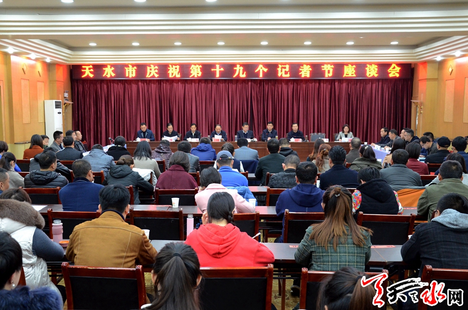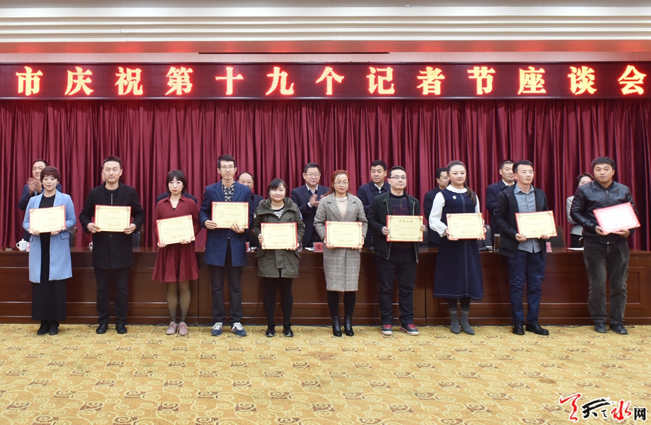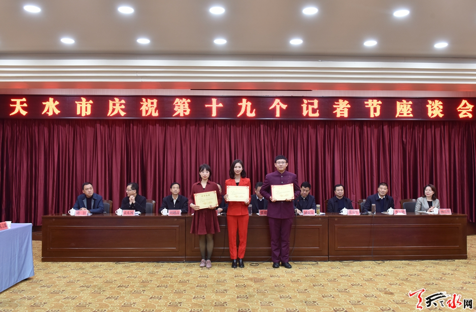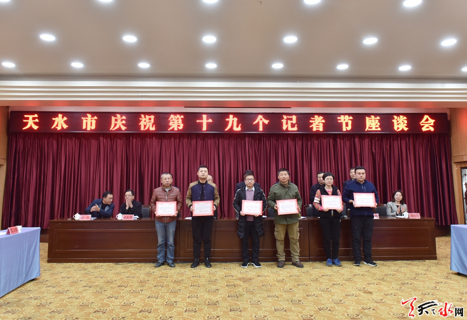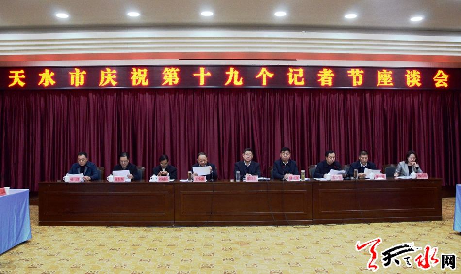 天天天水网讯【记者徐媛】11月7日,在第十九个记者节来临之际,天水市在天水迎宾馆召开庆祝第十九个记者节座谈会,向全市广大新闻工作者送去市委、市政府的问候和关心,总结一年来新闻舆论工作,表彰先进。市委常委、宣传部长张建杰出席座谈会并讲话,副市长逯克宗主持座谈会。