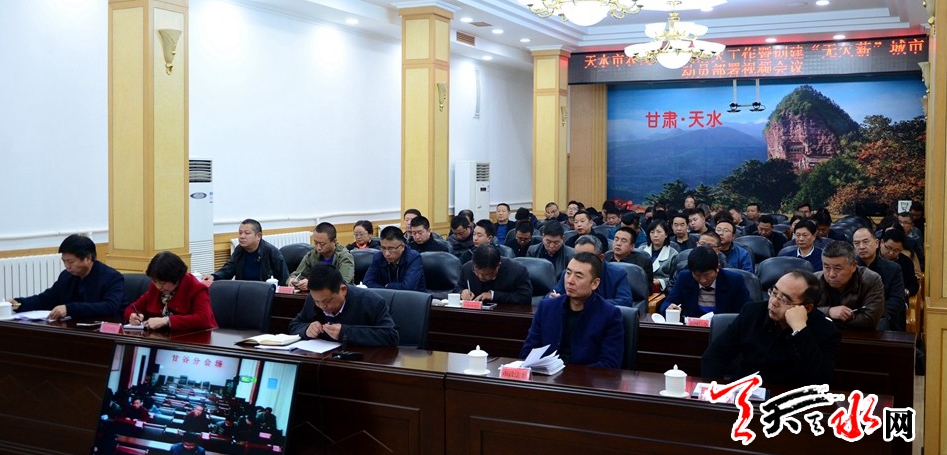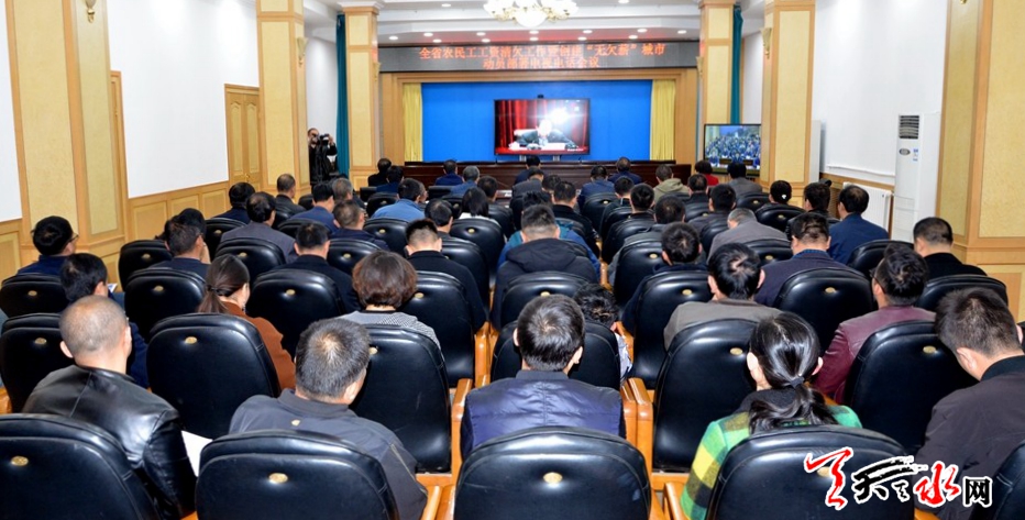 天天天水网讯【记者徐媛】11月6日,全省农民工工资清欠工作暨创建“无欠薪”城市动员部署电视电话会议召开。市解决企业拖欠工资问题联席会议总召集人、副市长逯克宗在天水分会场收听收看会议并作典型发言。