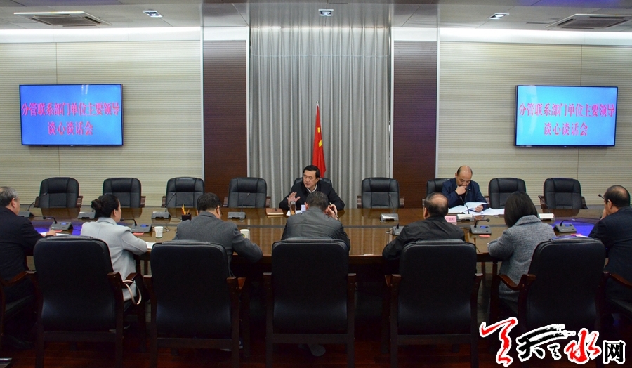 天天天水网讯【记者马凯】11月9日,天水市委副书记赵卫东主持召开与分管联系部门单位主要领导集体谈心谈话会,就省委第三巡视组向市委反馈交办问题涉及分管联系部门单位的整改落实工作进行谈心谈话,督促提醒各分管联系部门主要领导认真履行管党治党主体责任,切实提高政治站位,强化政治担当,对标对表,举一反三,拾遗补漏,按期完成整改落实任务。