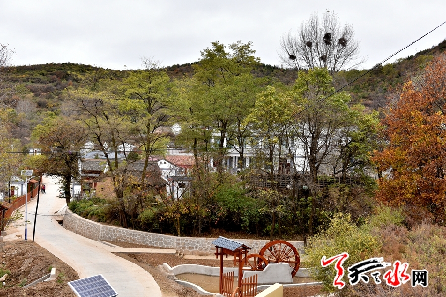 深秋时节,记者来到位于清水县秦亭镇西北部9公里处的麦池村,从山下绕行而上,迎面是掩映在树林之中的青瓦白墙。进村的水泥路绵亘蜿蜒,村口农耕文化园十分醒目,山泉穿行其间,红色的篱笆墙让这个小山村显得更加美丽灵动。