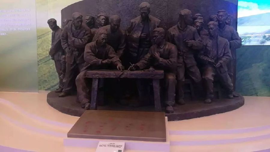 “我们的家乡,在希望的田野上。”1978年冬,安徽凤阳县小岗村18位农民坚定地按下红手印,实施包产到户,拉开了中国农村改革的大幕,成为中国改革的标志。这座雕塑让我们重温那个永载历史的瞬间。