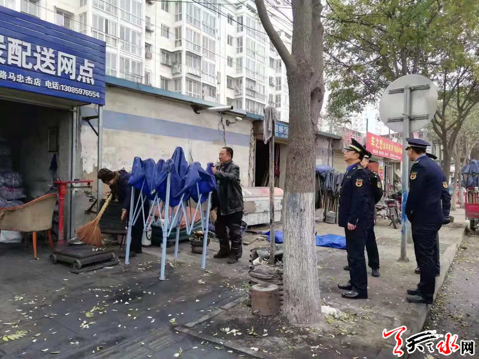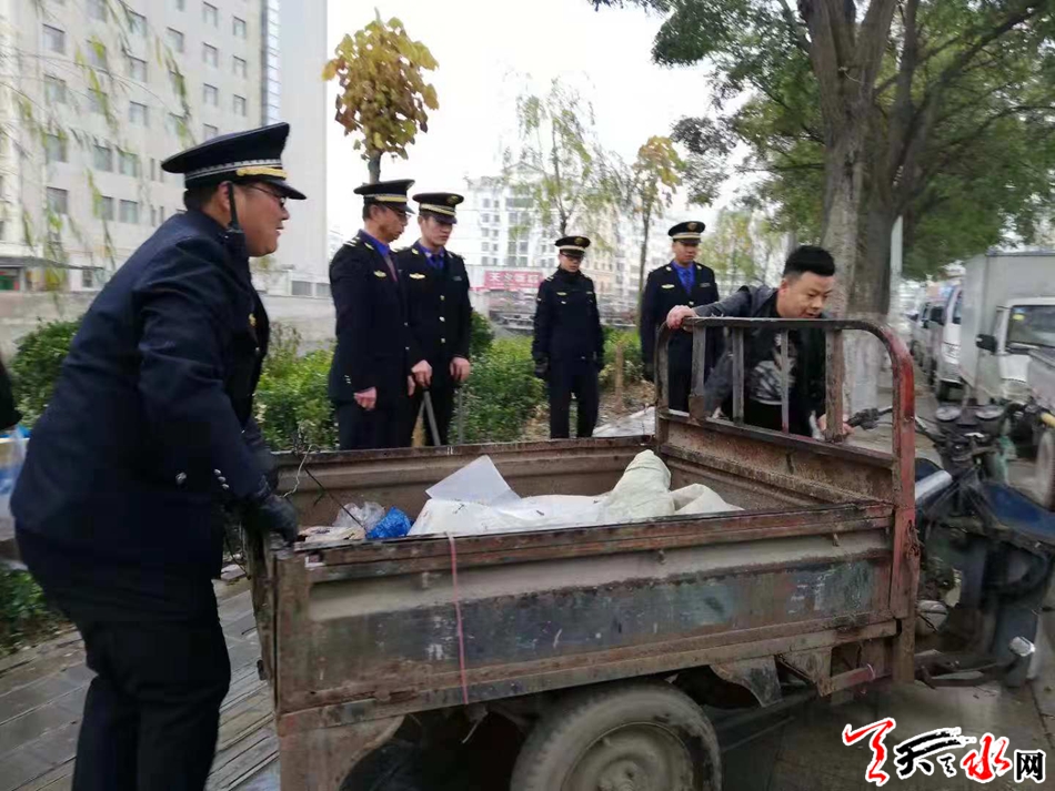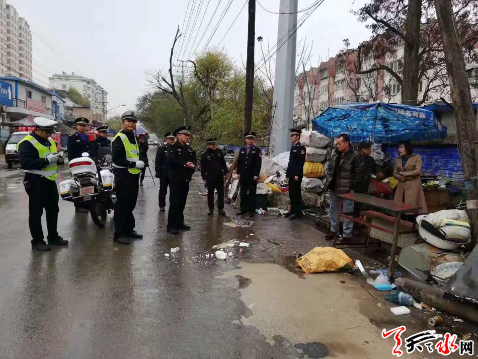 天天天水网讯(通讯员 孟剑锋) 皇城路地处城乡结合部,环境卫生和交通秩序一直比较混乱,马路市场、僵尸车、店外经营、乱堆放等现象不仅严重影响市容市貌,而且极易引发上下班高峰期路段拥堵不畅。为了解决这一现实问题,秦州区执法局东关中队与秦州公安分局城区交警大队二中队形成合力,采取强有力措施大力整治皇城路占道经营、乱停乱放等违法行为。
