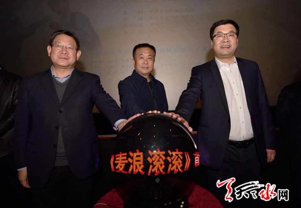 天天天水网讯【记者 张文都】 11月15日,天水党建系列微电影《麦浪滚滚》举行首映仪式,标志着这部酝酿已久的党建公益微电影走进大众的视野。天水市人大常委会主任、市委秘书长蒋晓强,市委常委、组织部长王正茂,市委常委、宣传部长张建杰共同启动了该片首映,并同市委组织部、宣传部、农工部、农业局等单位相关负责人一同观看了影片。