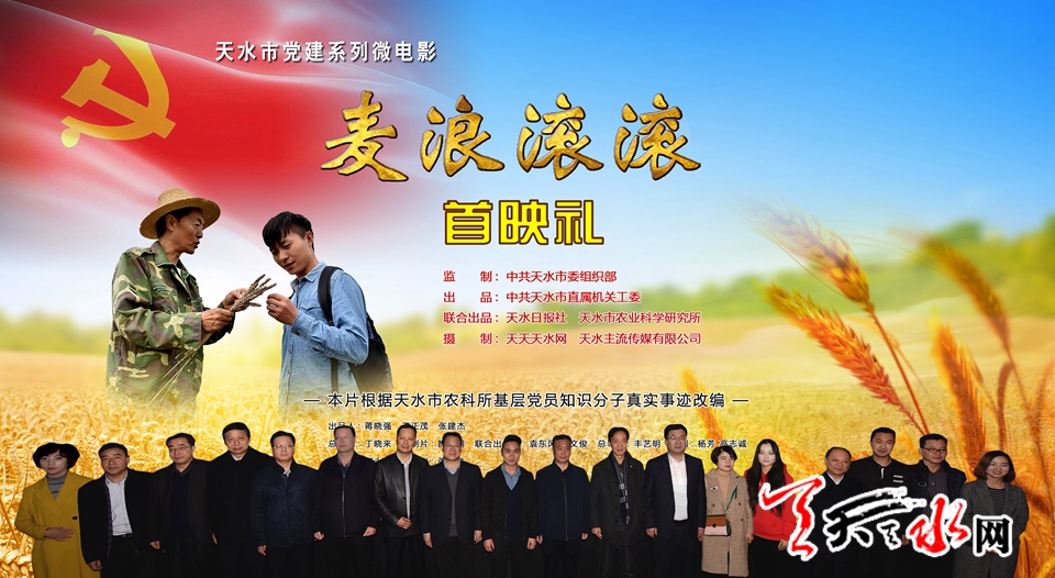 《麦浪滚滚》是一部反映天水农业基层党员知识分子成长历程的微电影,也是一部折射天水党建在找准新时代抓好机关党建着力点与深化点成果的电影。影片由天水市直机关工委出品,天水日报社、市农科所联合出品,天天天水网、天水主流传媒有限公司摄制。该片经过前期剧本创作、演员招募、有序拍摄,后期剪辑和上映审定,是天天天水网继今年第三部天水道德模范系列微电影《幸福》成功杀青后的第二部微电影。