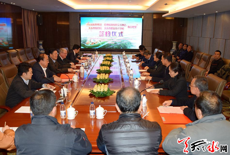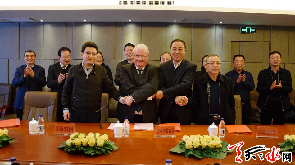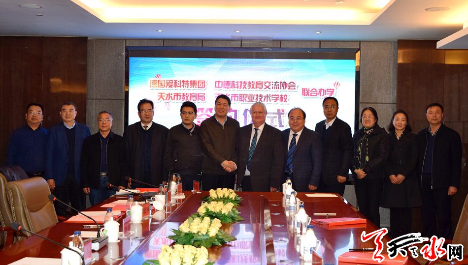 天天天水网讯【全媒体记者冯丽娟】11月14日下午,天水市教育局、天水市职业技术学校与德国爱科特教育集团、德中科技与教育交流协会举行联合办学签约仪式,按照四方签订的联合办学意向书,我市将学习德国职业教育的方法和经验,积极推进我市职业教育向国际化办学方向发展。