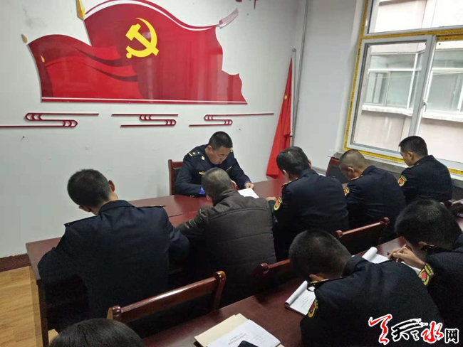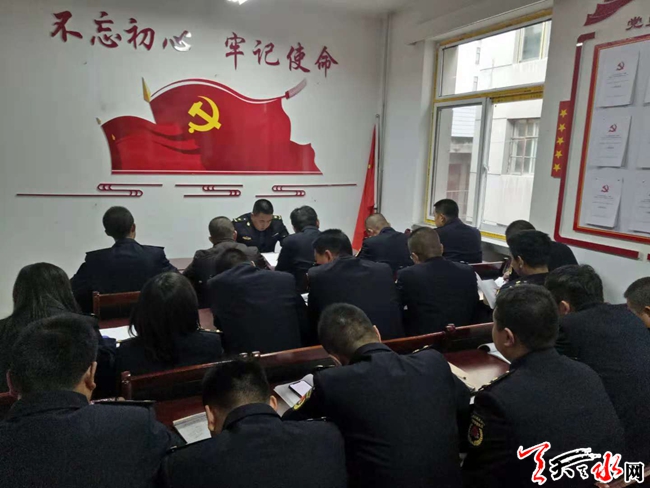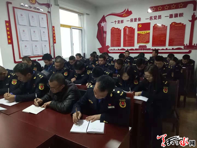 天天天水网讯(通讯员 汪凤英)为深入推进学习党的十九大及“两学一做”学习教育常态化制度化,将党员先锋模范作用和团结、协作、创新精神深化到各项城市管理工作中去,11月16日下午,秦州区执法局大城中队全体党员以《新时代、新担当、新作为》为主题进行了学习。