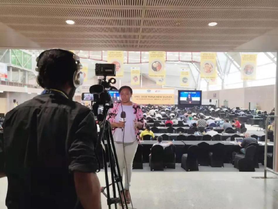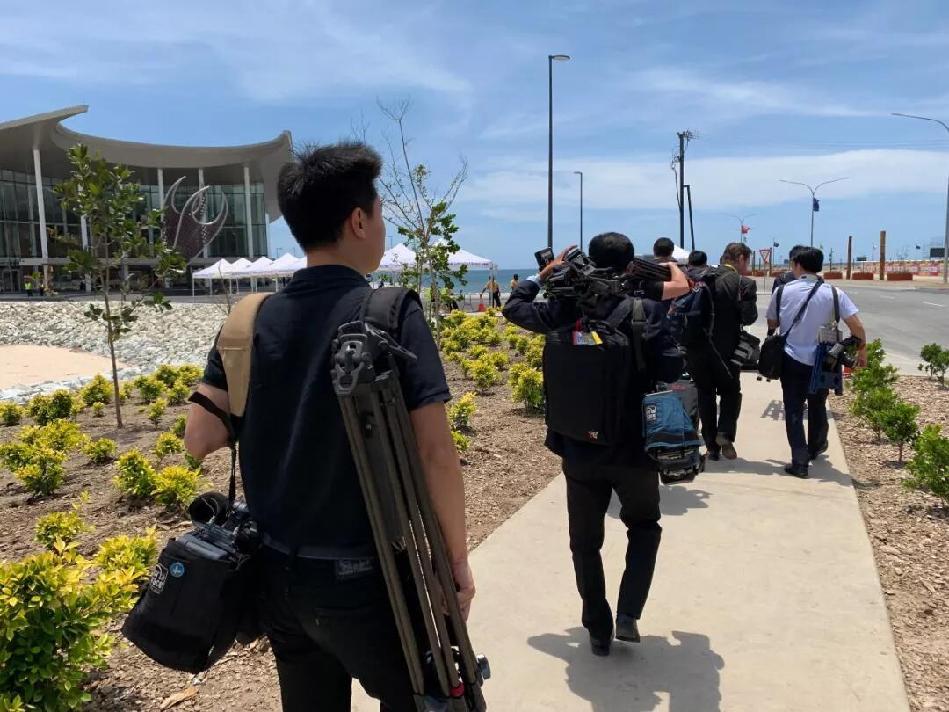 △国外记者出镜报道习主席演讲(央视记者李晓周拍摄)