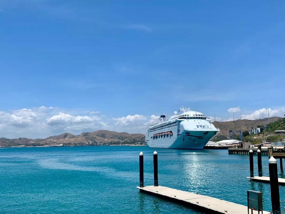 这次还有另一艘叫海洋公主号(Sea Princess)的邮轮也来到了莫尔斯比港,据说停泊在海湾的另一面。很遗憾,《时政新闻眼》没能拍到。