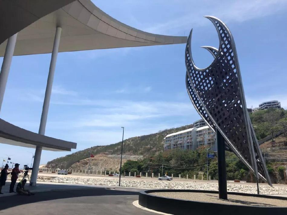 △APEC大厦前方的雕塑(央视记者王梦拍摄)