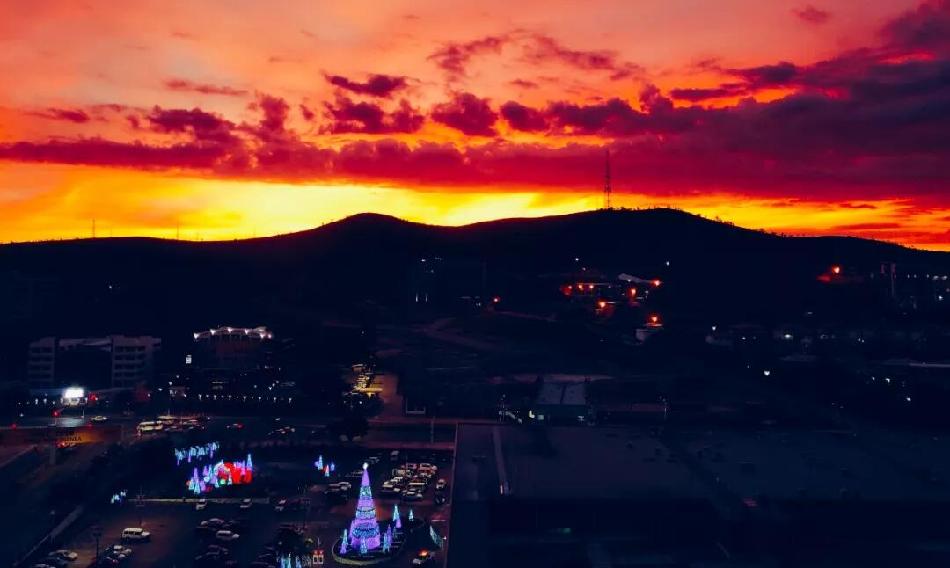 △晚霞如约而至,迎接各方贵宾。央视记者李晓周从中国代表团下榻酒店拍摄。