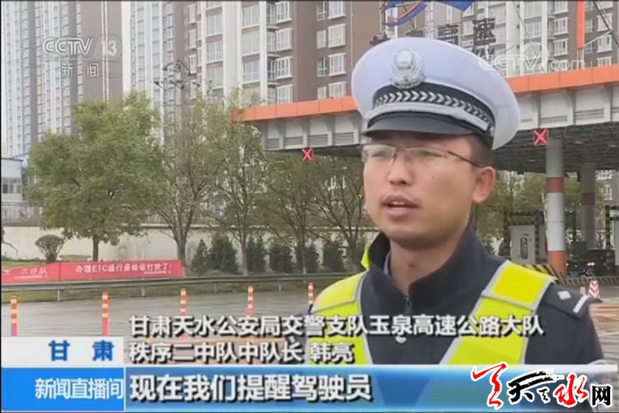 天天天水网讯 11月15日,中央电视台《新闻直播间》节目对天水公安交警部门应对恶劣天气工作情况进行报道,现场采访天水市公安局交警支队玉泉高速公路大队执勤民警。