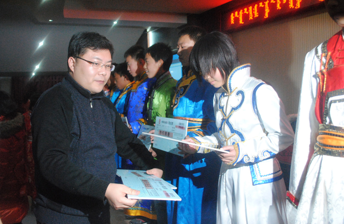 叶朝阳(左一)为内蒙古科尔沁右中旗贫困家庭学生捐款。图片来源:首都文明网