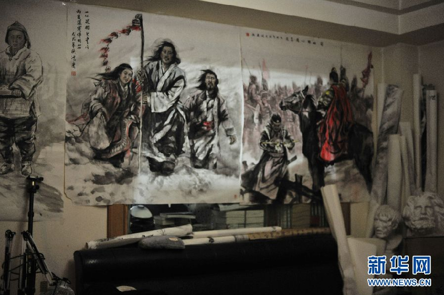 图为王鸿庆的画室