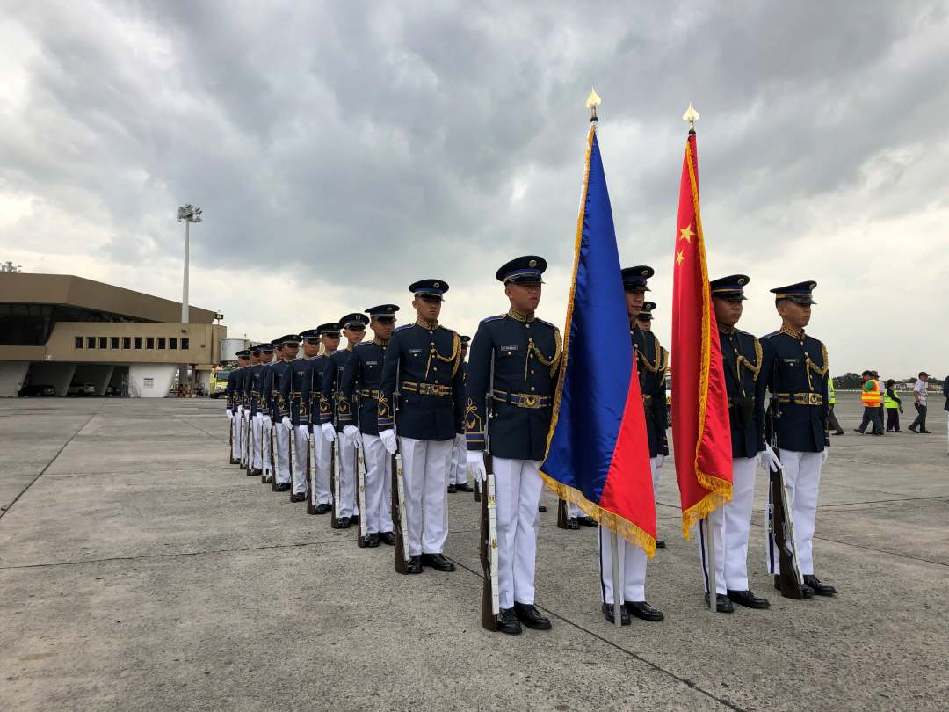 菲律宾礼兵在机场列队等待中国贵宾的到来。 人民日报记者 汪晓东 摄