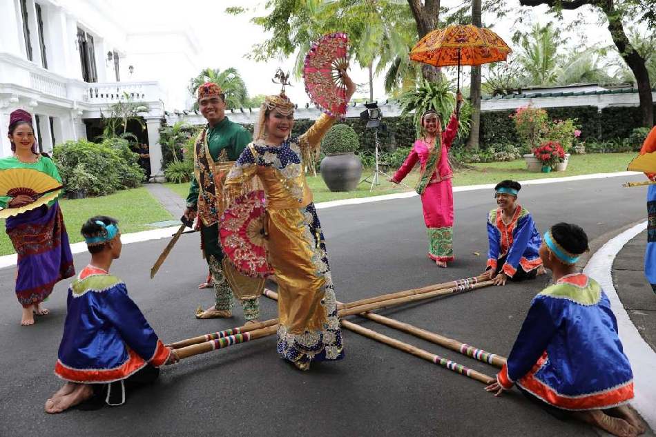 菲律宾总统府充满庄严、隆重、热烈的气氛。当地时间下午4时40分许,习近平乘车抵达总统府,受到杜特尔特热情迎接。两国元首登上检阅台。仪仗队行持枪礼。鼓手敲起激昂的鼓点,号手吹响迎宾的号声。军乐队奏中菲两国国歌。现场鸣放21响礼炮。习近平在杜特尔特陪同下沿红地毯检阅仪仗队。两国元首共同前往总统府主楼。沿途,当地艺术家伴着菲律宾传统竹管弦乐翩翩起舞,悠扬的乐声、曼妙的舞姿吸引两国元首不时驻足欣赏。