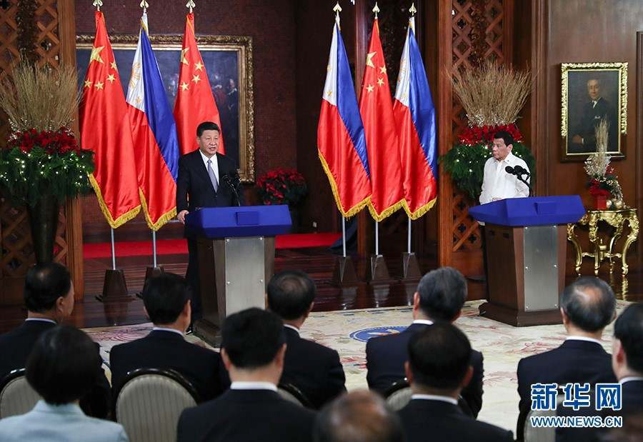 11月20日,国家主席习近平在马尼拉同菲律宾总统杜特尔特举行会谈。这是会谈后,两国元首共同会见记者。 新华社记者 谢环驰 摄