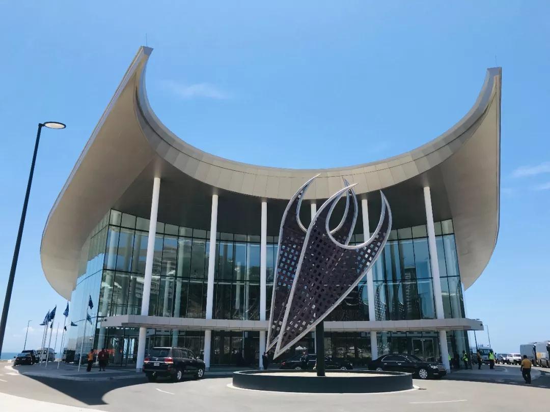 △举办本次APEC会议的APEC大厦,创意来自于巴新本地的古代商船。(央视记者拍摄)