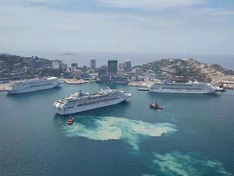 △本次APEC会议期间,莫尔斯比港来了三艘邮轮,为会议提供服务,其中APEC工商领导人峰会就是在图右的船上开的。(资料图)